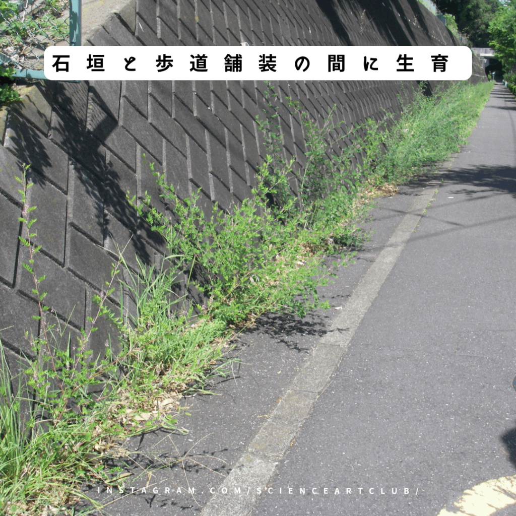 多摩丘陵を横断する鎌倉街道の瓜生付近で、コマツナギを見つけた。歩道の端の石垣とアスファルト舗装の隙間に根を伸ばして生育していた。高いものは1.5mほど、株状に立ち上がっている。直線的に伸びた細い茎に淡紅紫色の花を付けている。