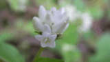 多摩丘陵の谷部にある歩道の植え込みの中でエノキグサを見つけた。低木の植え込みからまっすぐに立ち上がっている。草丈は約80㎝である。よく見ると長楕円形で先がとがった大きな葉とハート形の葉(総苞)がついている。