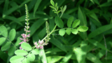 葉は対生で、葉身の長さ約4㎝、幅約3㎝、葉柄の長さ約1㎝の卵型で、先が尖り縁には鋸歯がある。