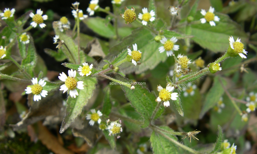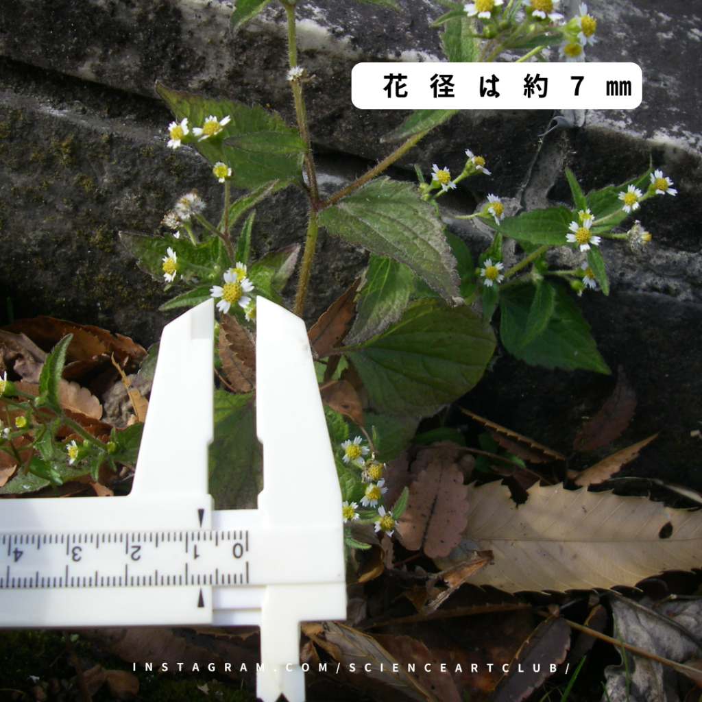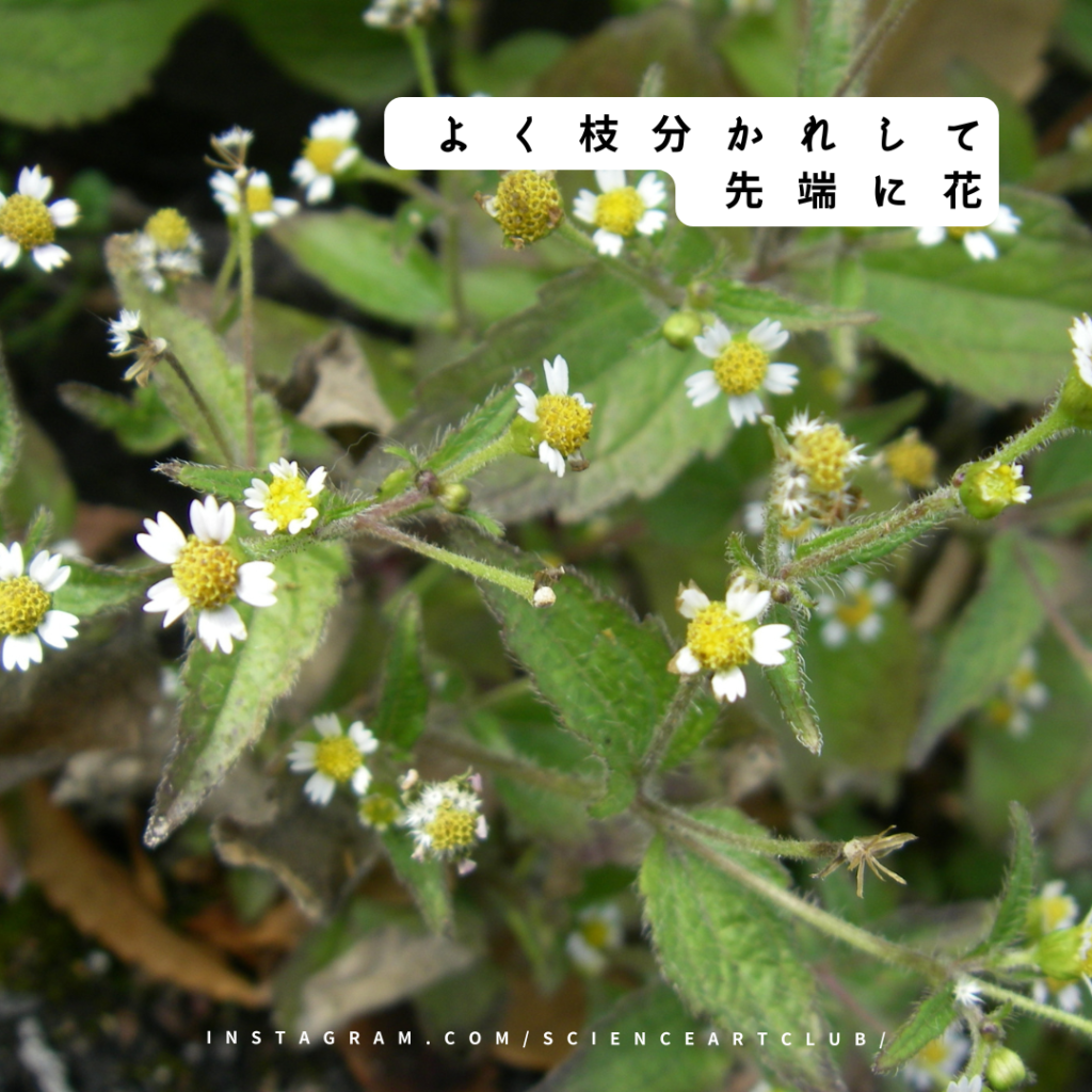 ハキダメギク(Galinsogaquadriradiata)はキク科コゴメギク属の1年草で、熱帯アメリカ原産である。漢字表記は掃溜菊、大正時代に東京の世田谷のはきだめで見つかったそうだ。命名者は牧野富太郎とあった。